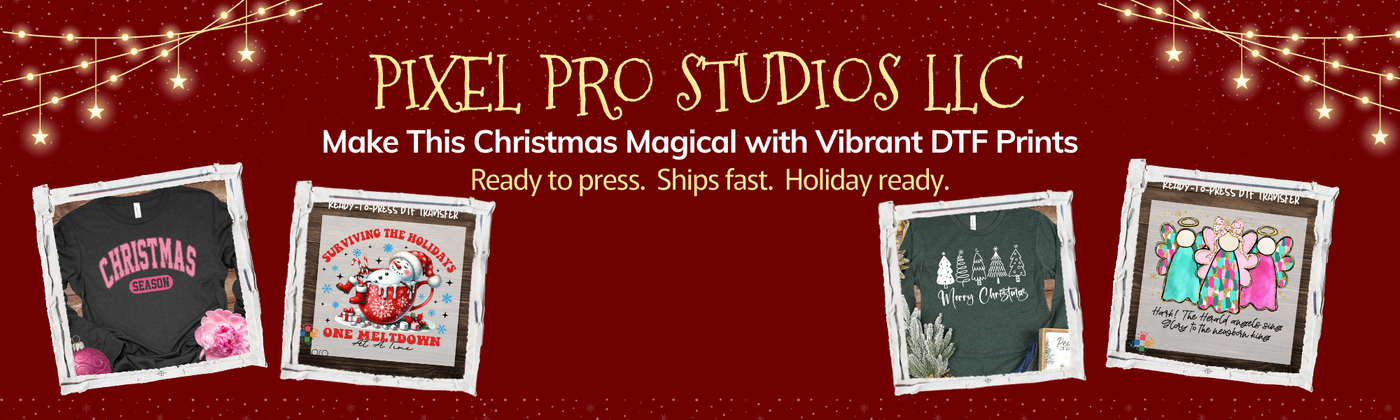 Pixel Pro Studios is where creativity meets quality! We bring your designs to life with bold, vibrant DTF prints that pop on every press. Whether you're a small shop or a big brand, we make it easy, fast, and fun to get exactly what you need—no fuss, just flawless prints every time. Let’s create something unforgettable!